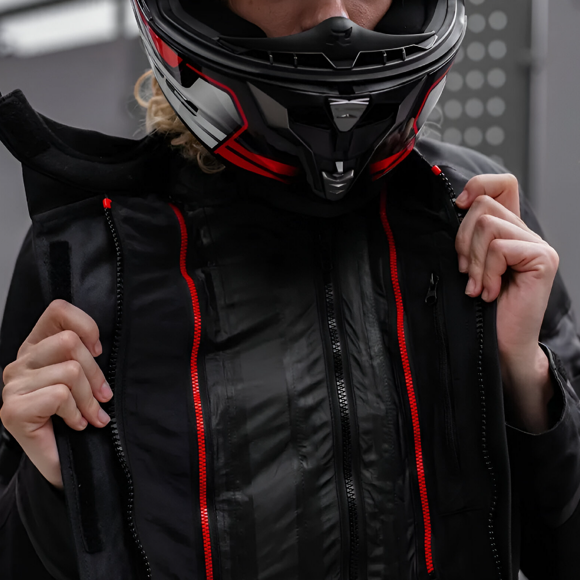 CARACTERÍSTICAS• Forro impermeable desmontable • Forro térmico desmontable • Ajuste de velcro en cuello y puños • Ventilación en delantero, espalda y mangas • Correas de ajuste en brazos y cadera • Cremallera para acoplar a los pantalones • 1 bolsillo interior • Bandas reflectantes