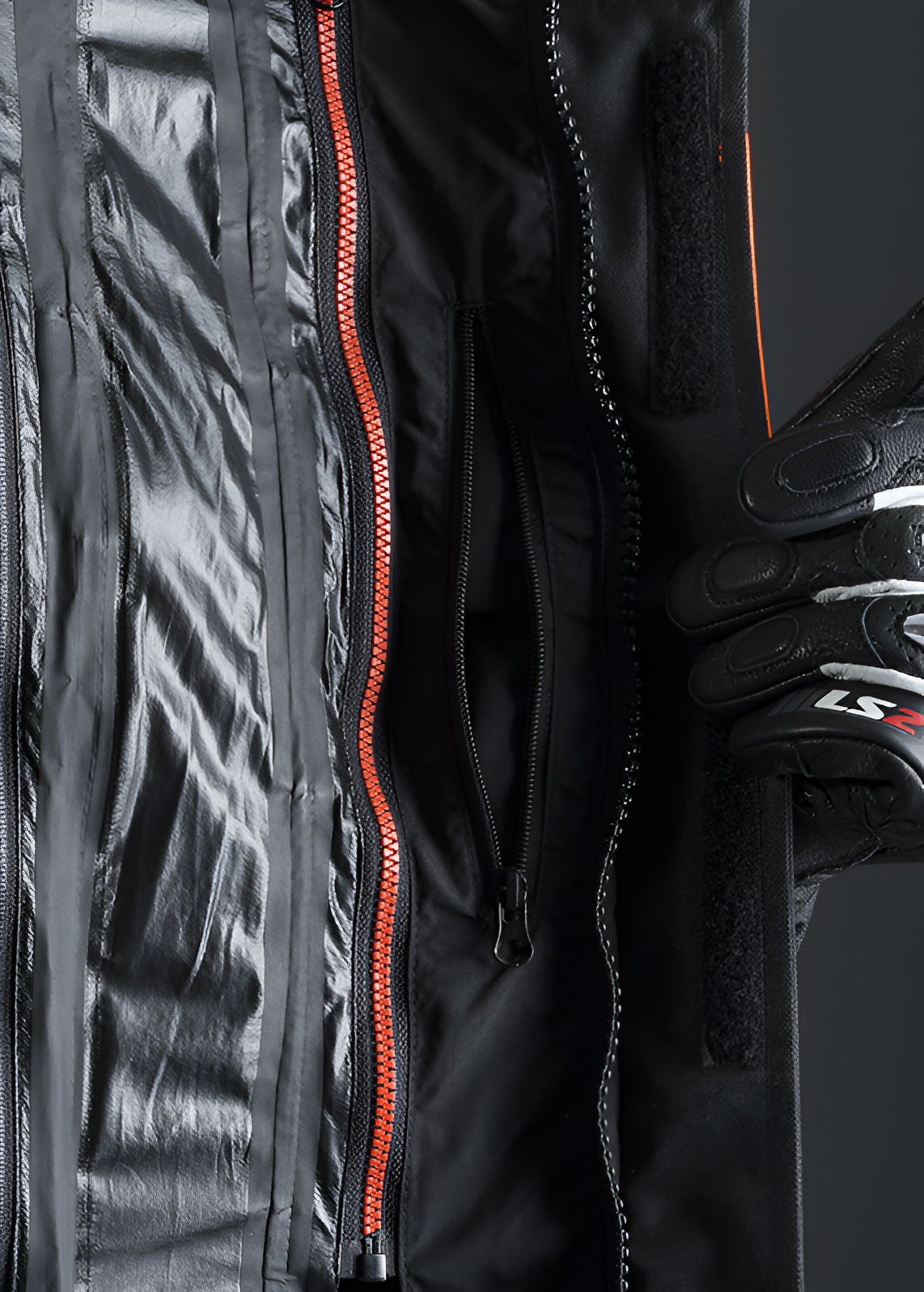 MATERIALES Y TEJIDOS• Tejido Oxford 600D de malla de diamante • Membrana impermeable y transpirable desmontable (5000mm) • Permeabilidad del aire (3000g/m²/24h) CERTIFICADO - CLASE A(EN 17092-4:2020)